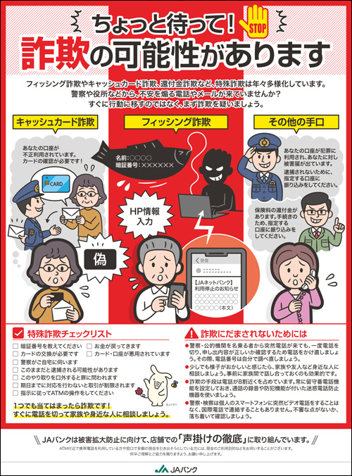 このたび、JAネットバンクを装ったフィッシングメールが不特定多数に送信され、JAネットバンクを装ったサイトが開設されていることが判明しましたのでご注意ください。 https://www.jabank.org/attention/phishing/